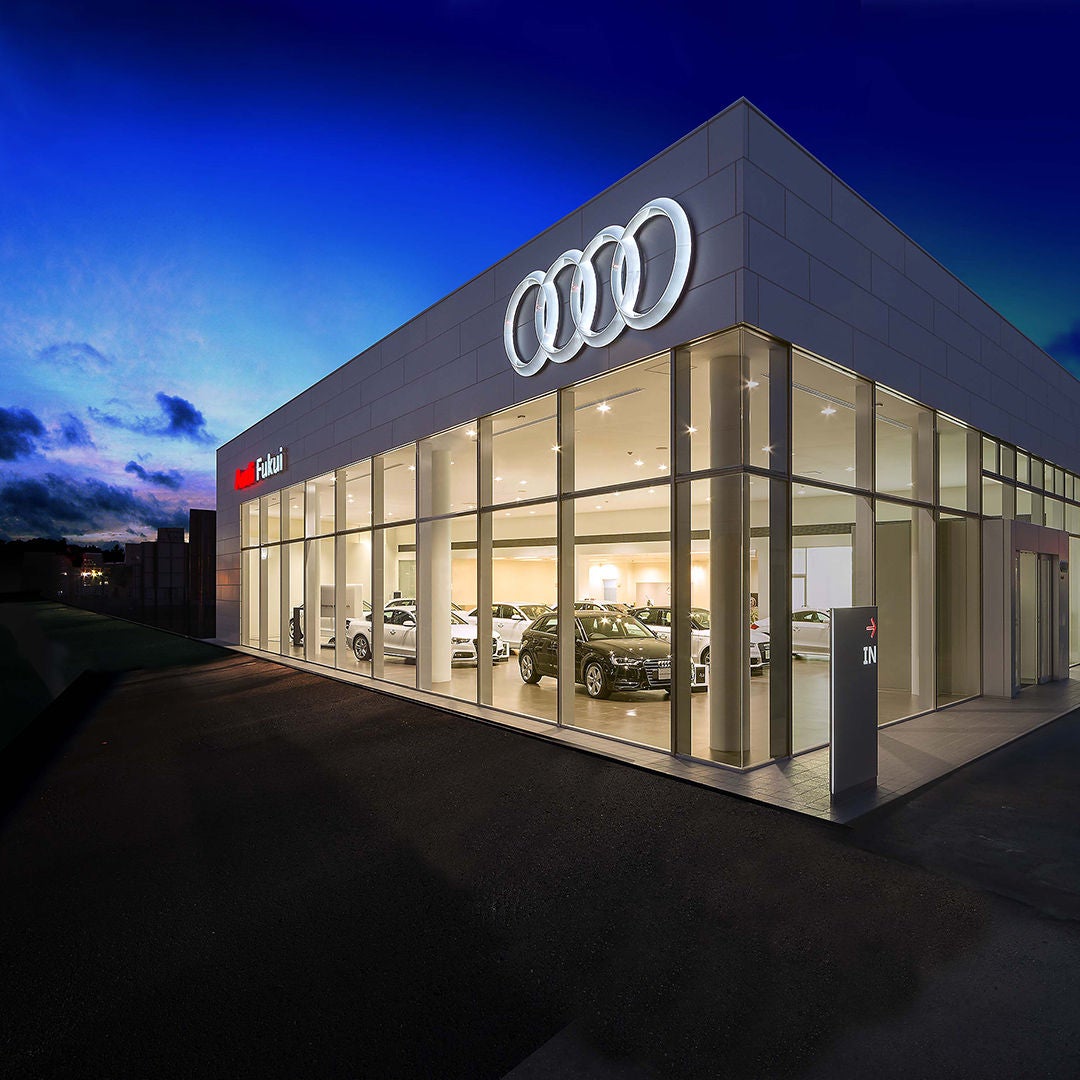 アウディのCI/CDに基づいてデザインされたショールームには最新のアウディラインナップを取揃えております。